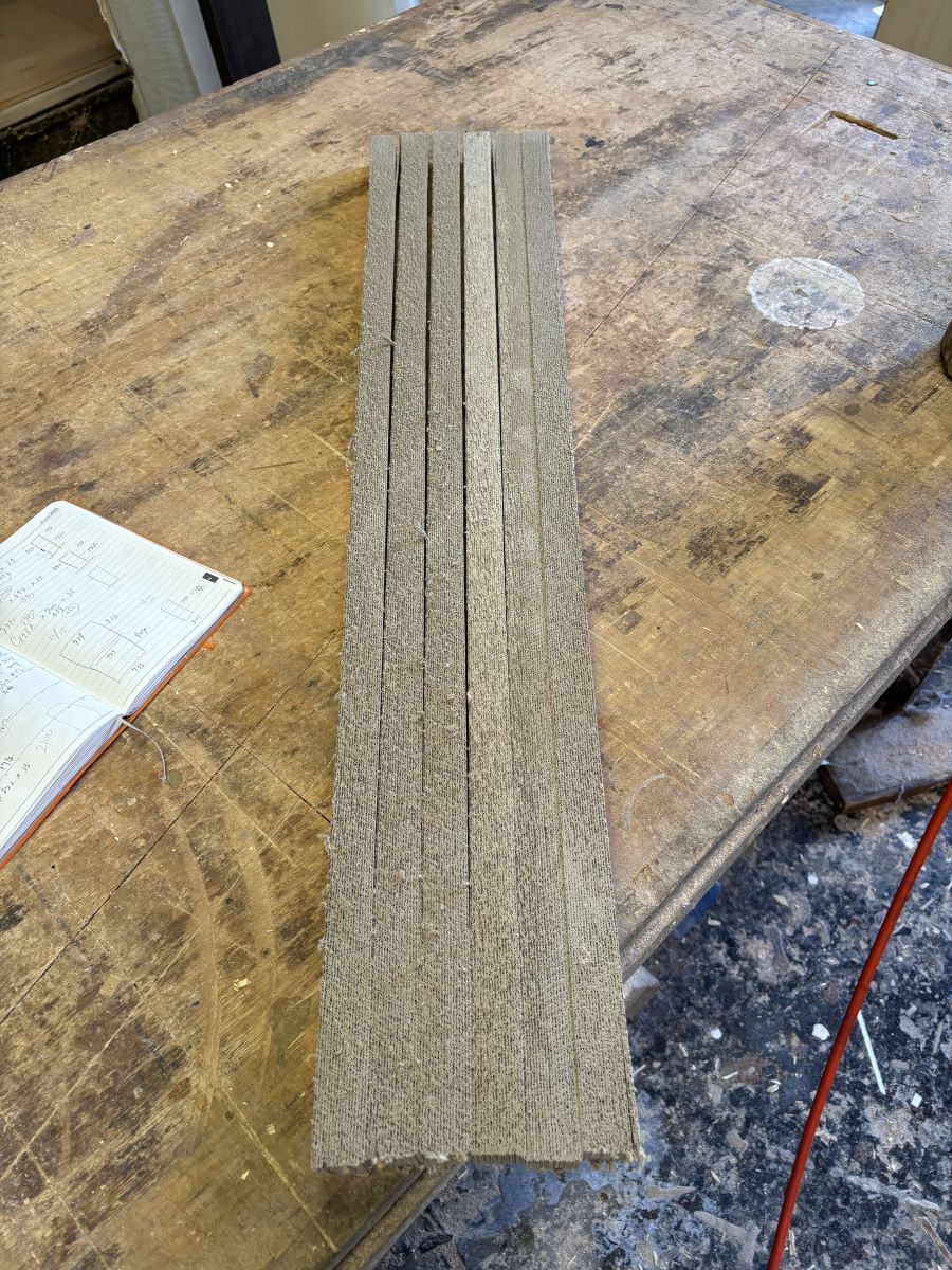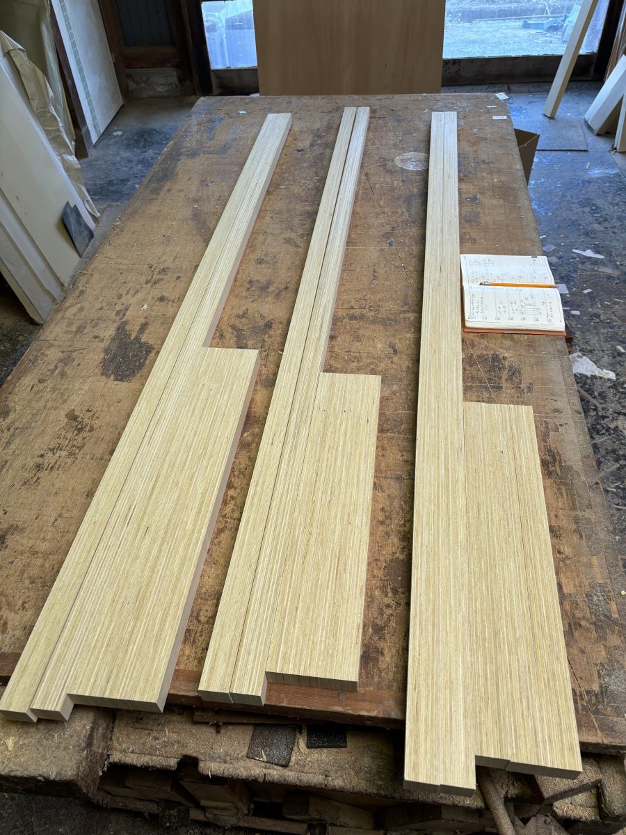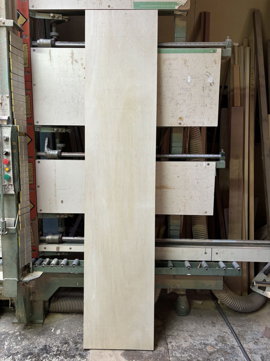 一枚の板からドア3枚分製材 寸法に合わせ3枚分の芯材カット